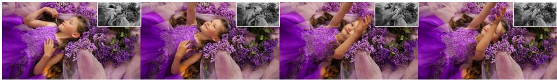 在图 .6 和图 .7 中,我们基于 Wan-T2V 展示了更多定性的结果,包括诸如扩展、修复、延伸、灰度、深度、涂鸦、姿态、布局、人脸参考和物体参考等任务。