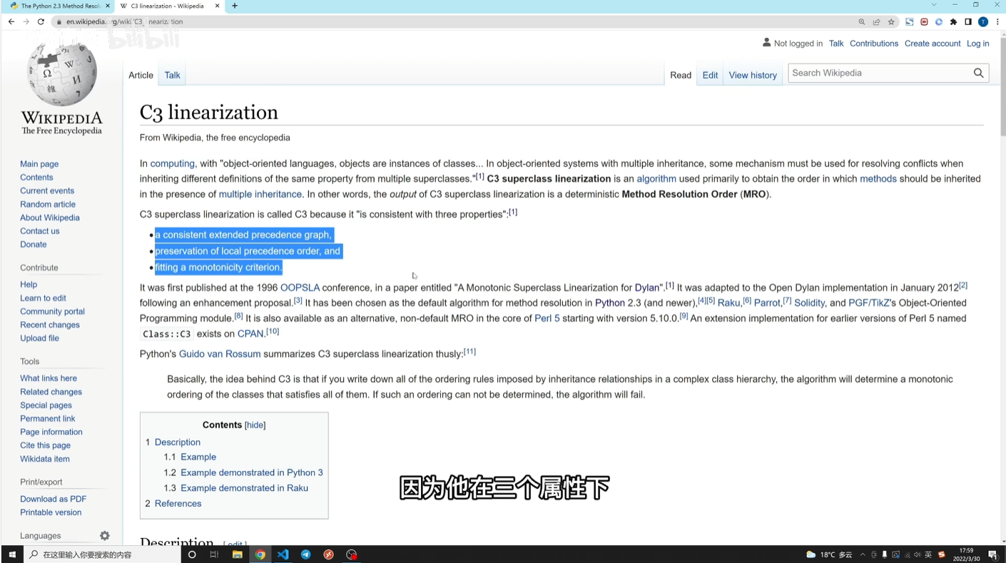 Python 2.3版本后,MRO的计算统一采用C3线性化算法(C3 Linearization)。该算法由1996年提出,最初用于Dylan语言,核心是“在三个关键属性上保证一致性(Consistent)”,因此命名为“C3”。