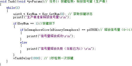 void Task1(void *pvParams)// 任务1:按键检测,释放信号量(生产者)
