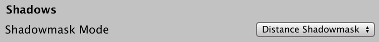可通过质量项目设置中的两种方式来配置阴影遮罩混合光照。我们将使用"距离阴影遮罩"模式,另一种称为"阴影遮罩"的模式将在后续讨论