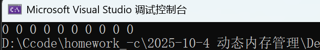 //calloc #include <stdlib.h> #include <stdio.h> int main() {//申请10个整型的空间int* p = (int*)calloc(10 , sizeof(int));if (p == NULL){//空间开辟失败perror("malloc");return 1;}//空间开辟成功,可以使用这40个字节int i = 0;for (i = 0; i < 10; i++){printf("%d ",p[i]);//*(p+i)}//释放free(p);p = NULL;return 0; }