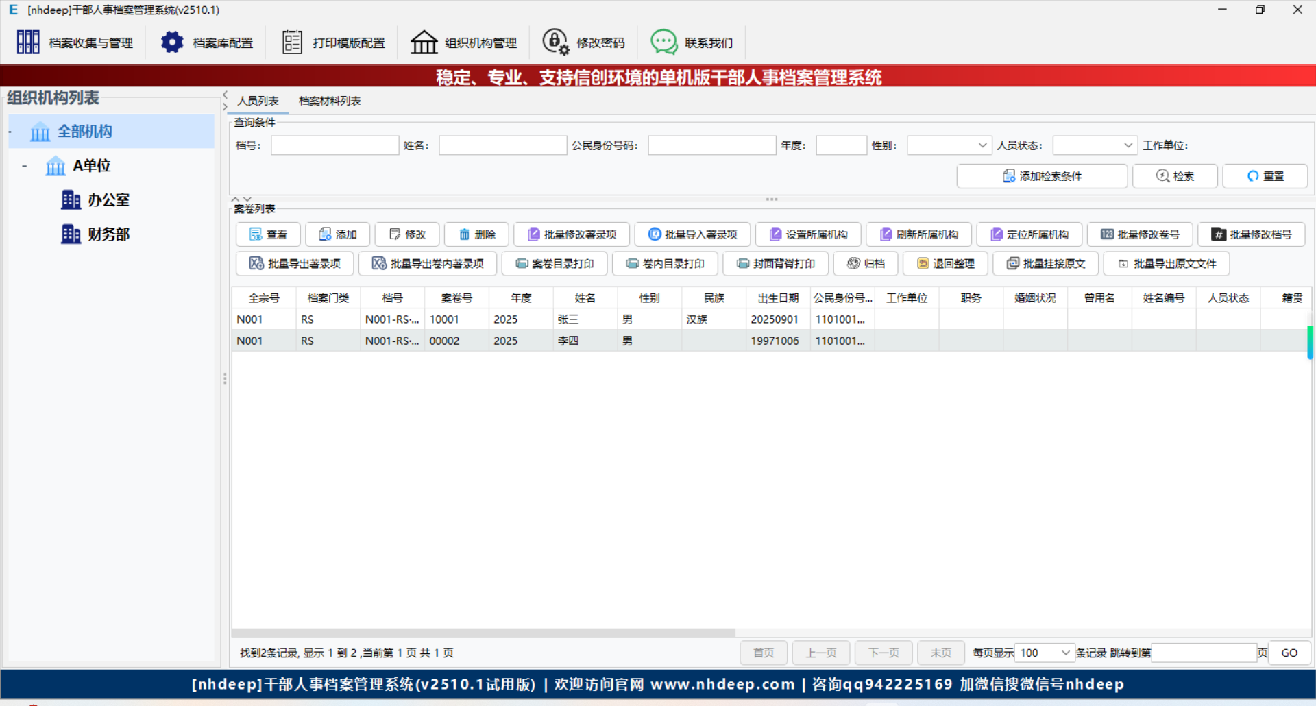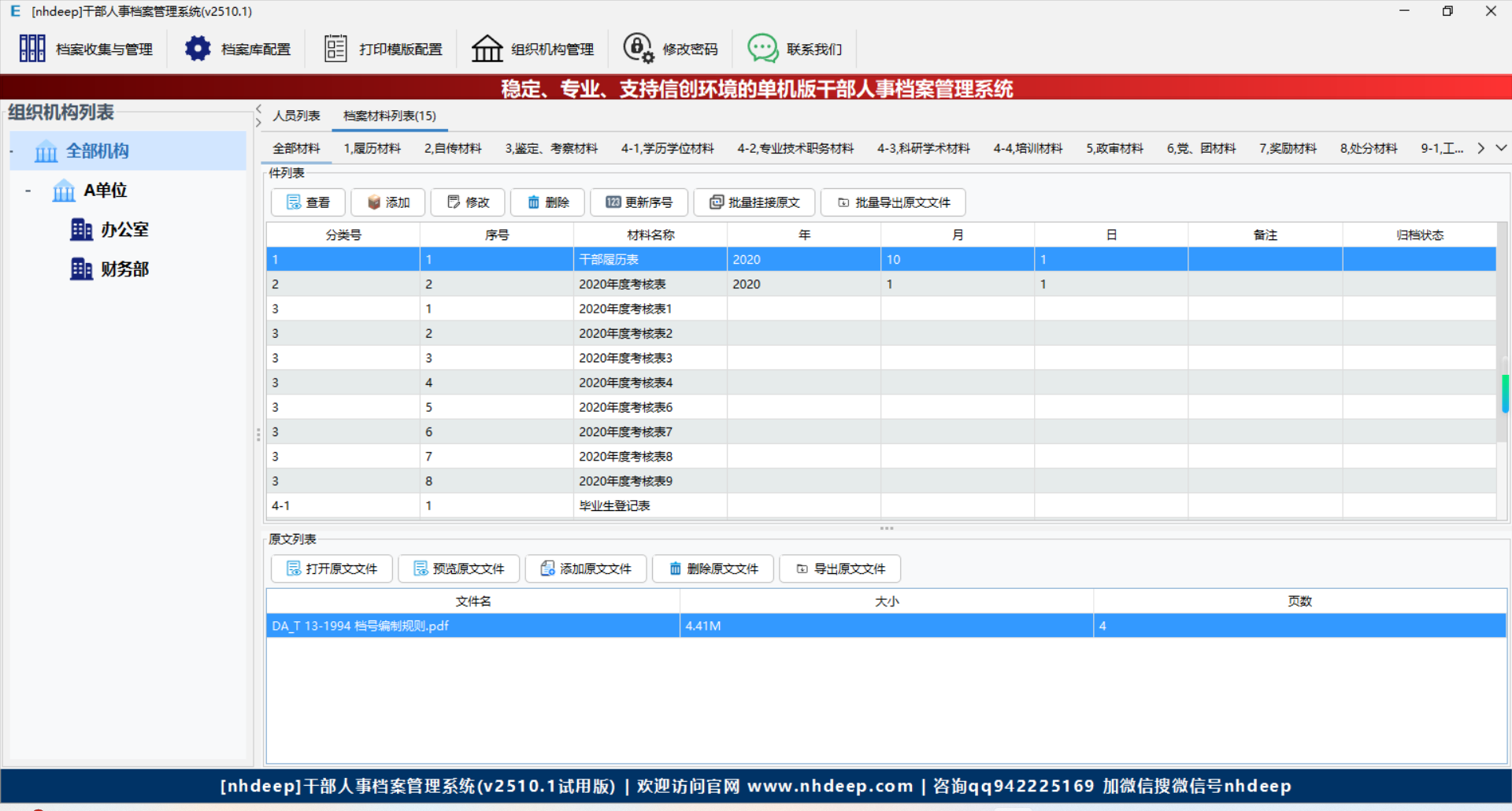 NHDEEP干部人事档案管理系统是一款专注于干部人事档案管理的单机版软件,无需网络即可运行,并支持信创环境(如银河麒麟操作系统),在保障数据安全的同时,提供了全面而高效的干部人事档案管理解决方案。