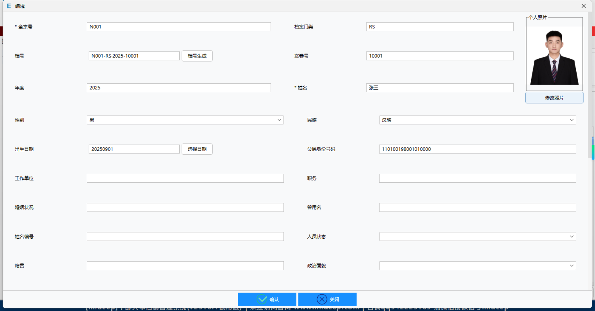 系统内置了标准的干部人事档案著录项,同时提供了高度的灵活性。用户可以根据本单位的实际管理需求,为不同类型的档案库添加自定义著录项,从而更好地满足个性化信息记录的需要