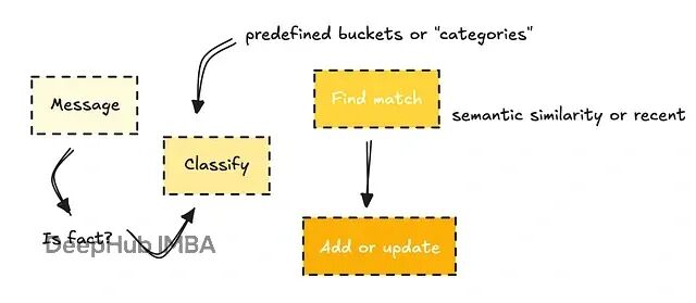 然后把事实归到预设的类别里(比如个人资料、偏好、项目),相似的就更新现有记忆,不同的就新建一条。你可以理解这就是redis,把临时数据以kv的形式存在内存里面,断电了(会话结束)内存的数据没了/