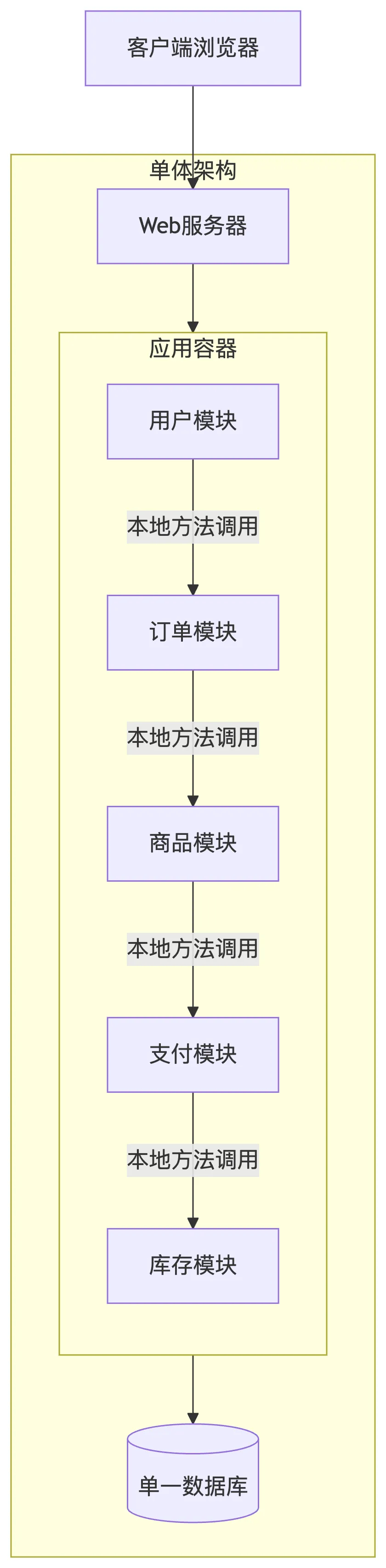 1️⃣ 单体架构(Monolithic Architecture)