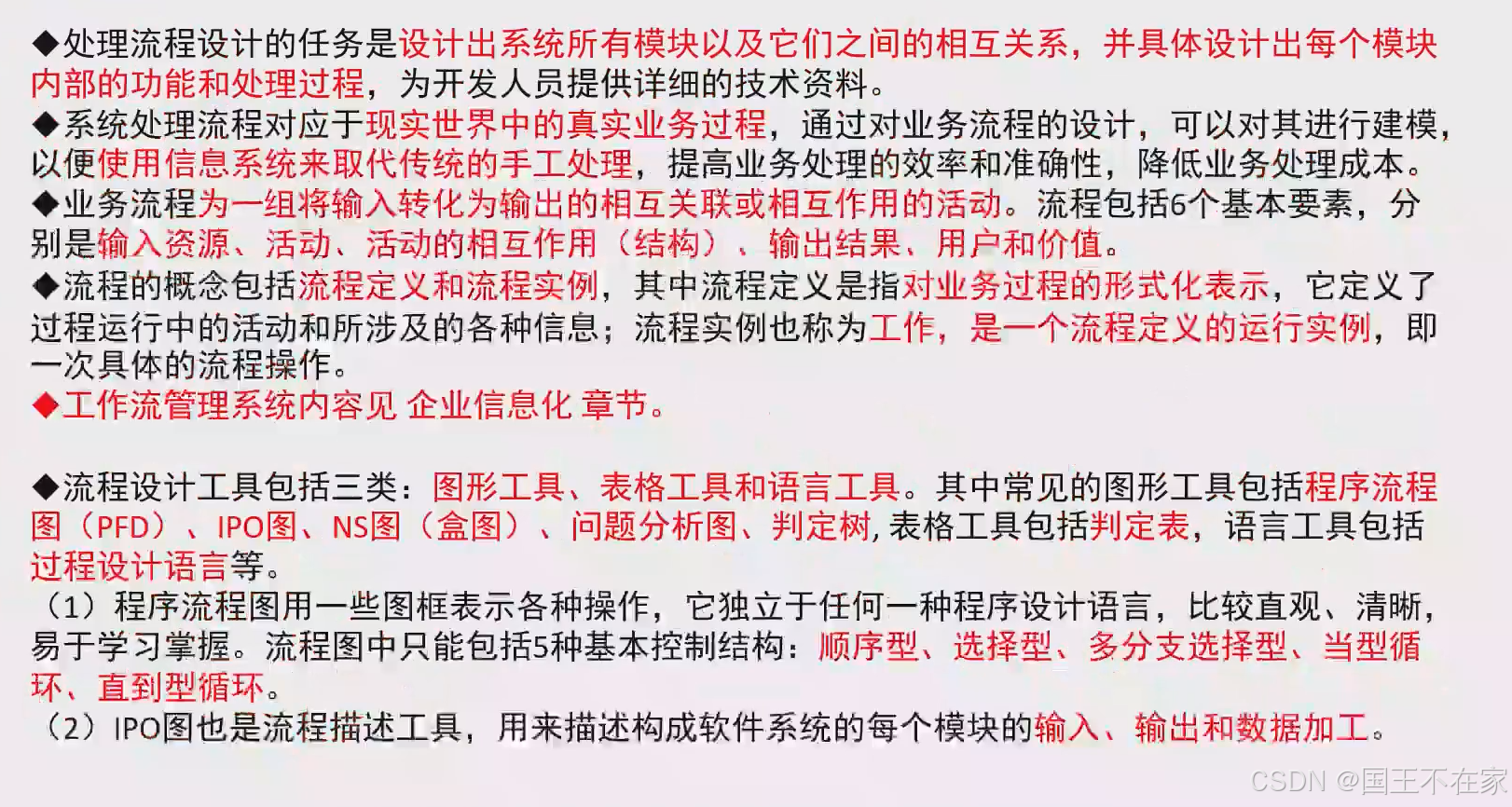- 流程设计3类工具:图形工具、表格工具、语言工具。