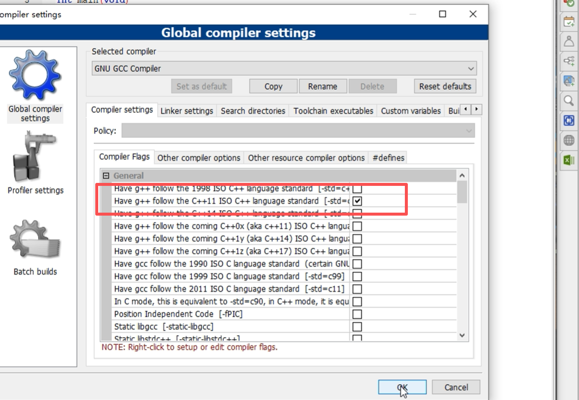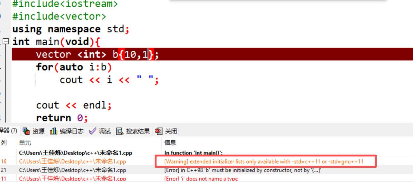 注意切换到c++11(版本不行)