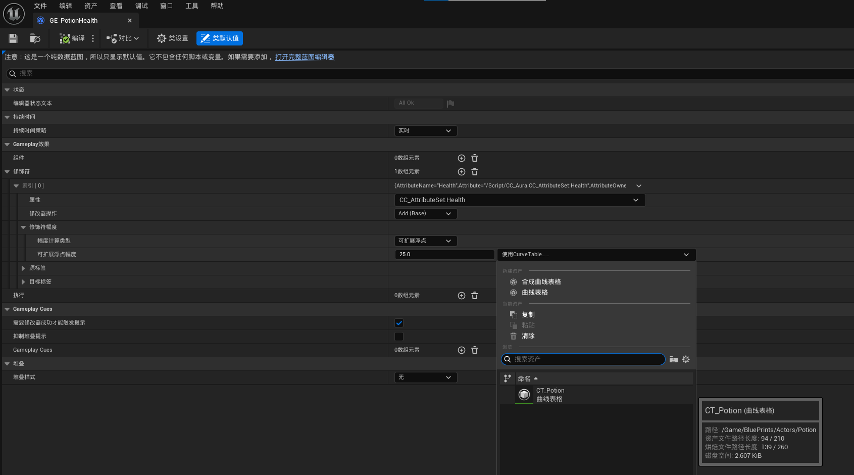 虚幻引擎5 GAS开发俯视角RPG游戏 P04-12 可缩放浮点数的曲线表