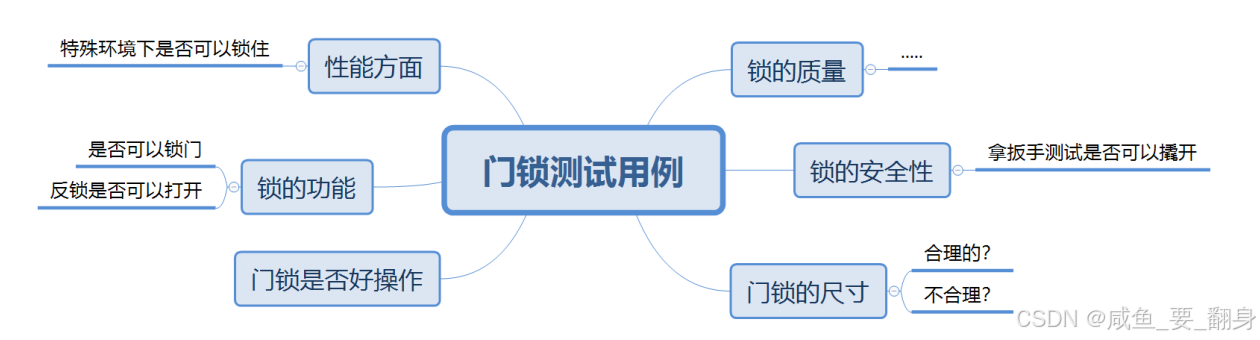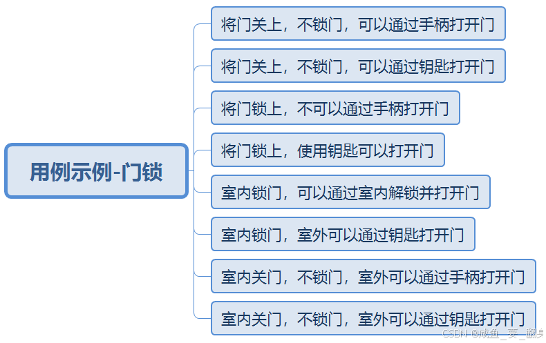 现在有⼀款产品,要求我们对“门锁”设计测试用例,假如你是测试人员,你会怎么设计呢?但最起码一点:用例的设计最重要的一点是保证功能是正确的。