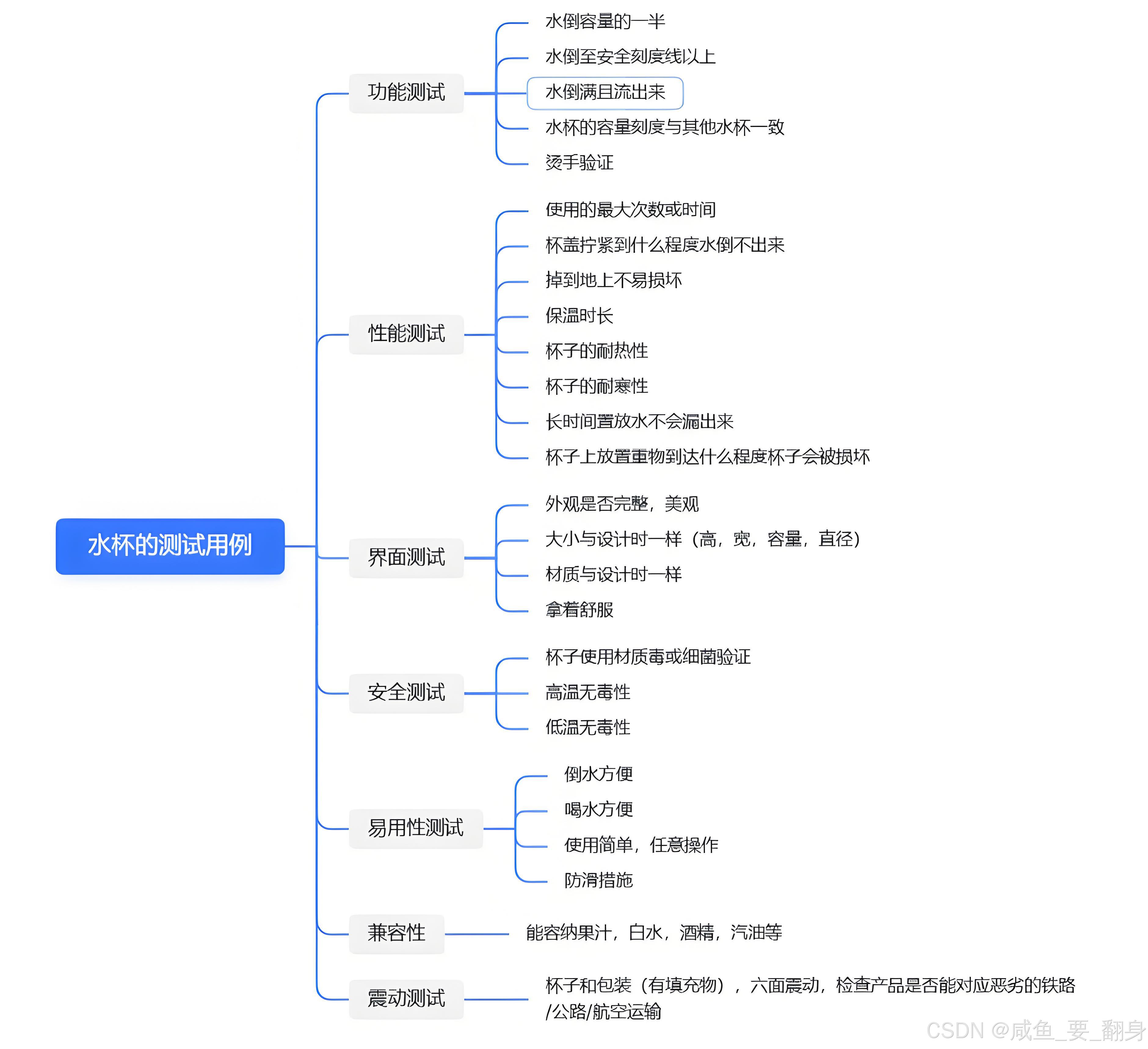 例如,我们通常会对某件东西进行一系列常规测试,这些内容虽然不会逐条写在纸上,但每一条验证项实际上就是一个测试用例。在表达方式上,笔试时通常要求按照 Excel 表格的格式编写,强调测试用例的完整要素;而在面试中,则更适合使用思维导图的方式,以清晰的逻辑层次逐点阐述测试思路,而无需拘泥于形式上的要素罗列。