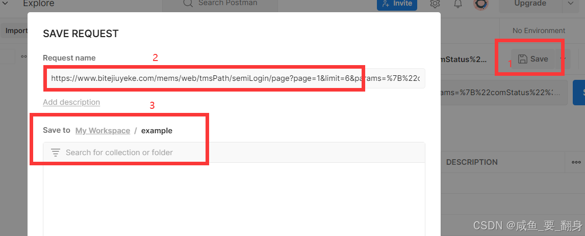 为此请求命名,并选择保存到现有的或新建的集合文件夹中。