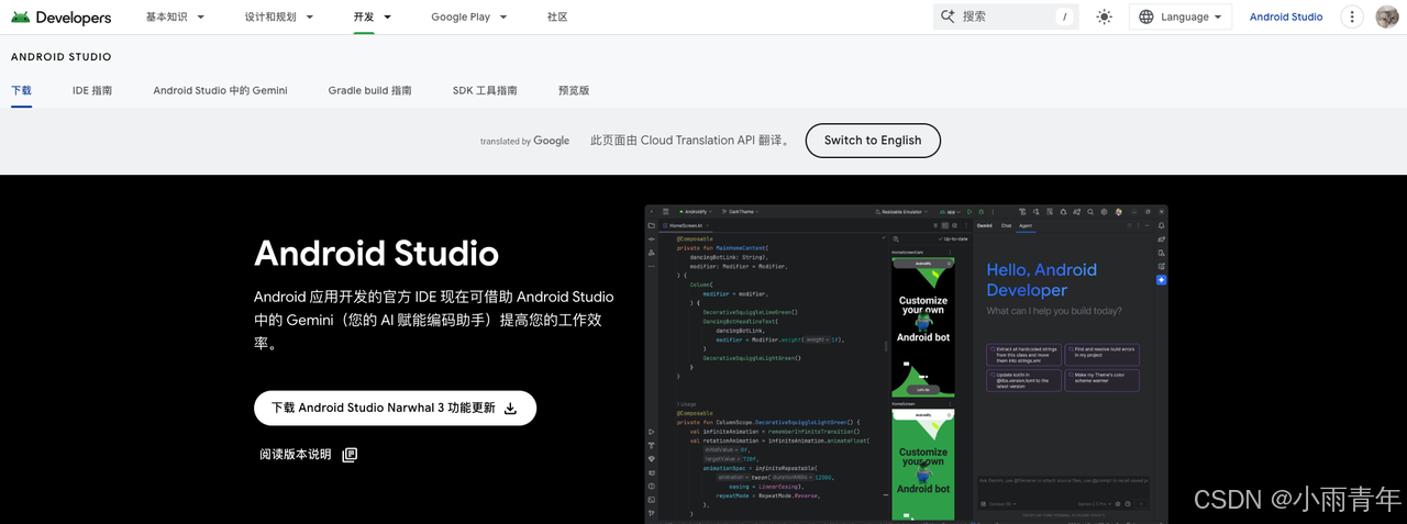 我们从 Google 官方页面下载安装最新稳定版 Android Studio。https://developer.android.com/studio?hl=zh-cn