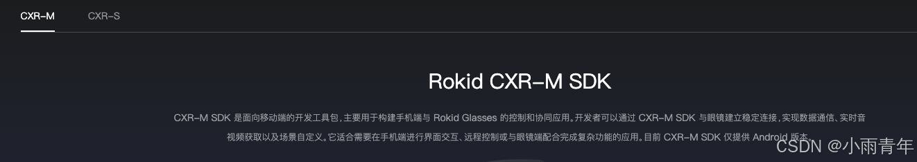 如果你的目标是“手机做大脑,眼镜做显示与交互前端”,那你更适合走 CXR-M(Mobile) 这条路,官方把它定义为手机侧开发工具包,负责把“手机 ↔ 眼镜”的稳定连接与数据通道打牢,典型场景是字幕、翻译、遥控、看板这一类伴随式能力。