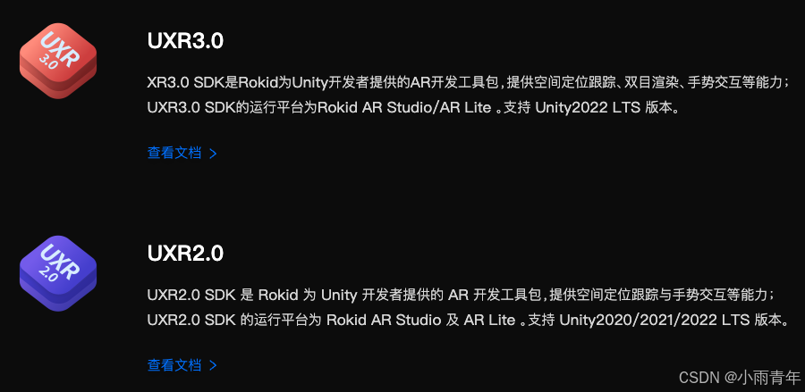 目前官方也同时支持 UXR2.0,它们的区别在于支持的 Unity 的版本不同,大家可以根据自己的情况选择对应的版本。