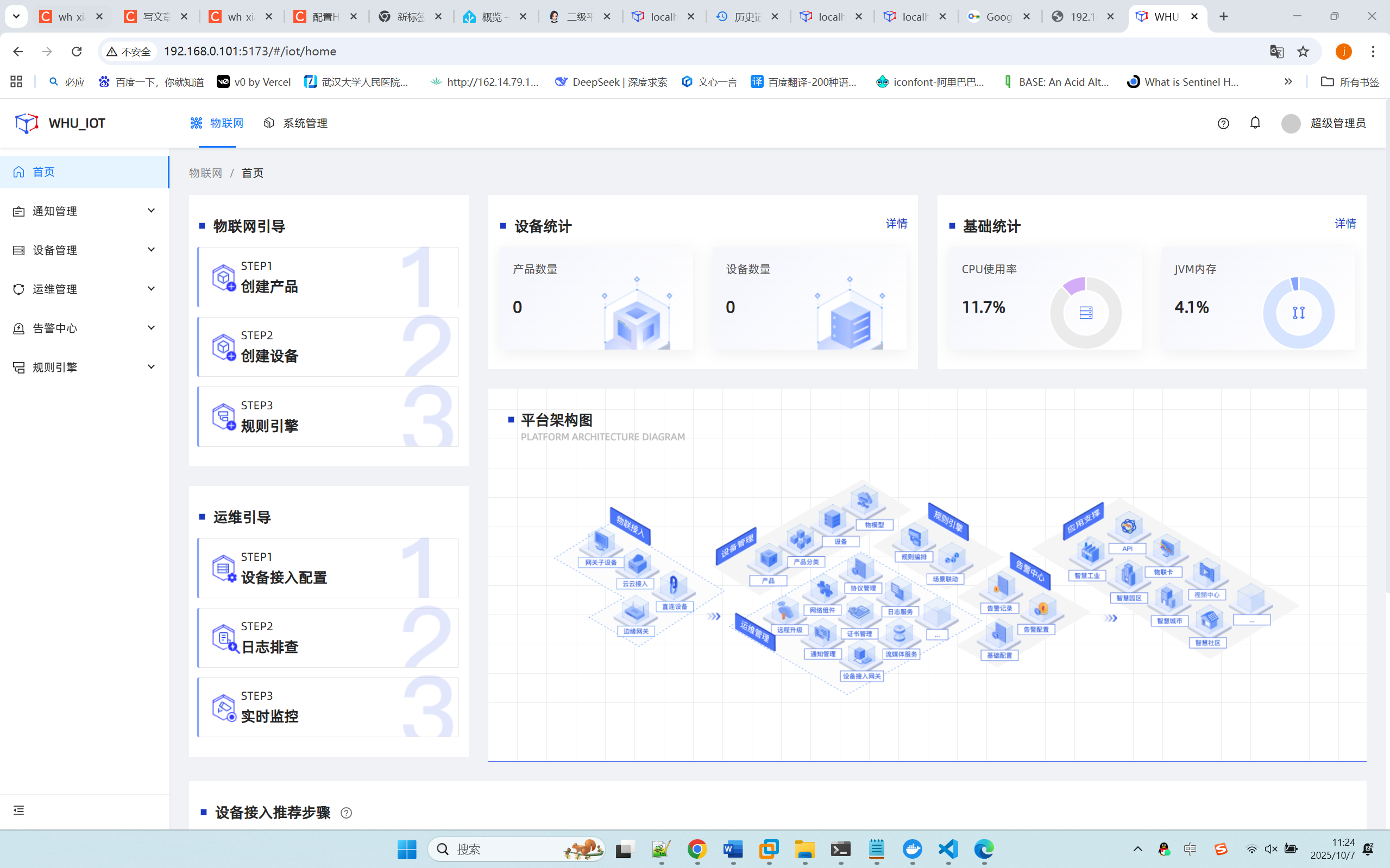 简单说:JetLinks 是 “上层应用”,你启动的 4 个服务是 “底层支撑” —— 没有 Redis 缓存、PostgreSQL 存储、Elasticsearch 搜索,JetLinks 无法运行;而前端 Vue 是 JetLinks 的 “操作界面”,必须连接后端 Java 服务才能用。