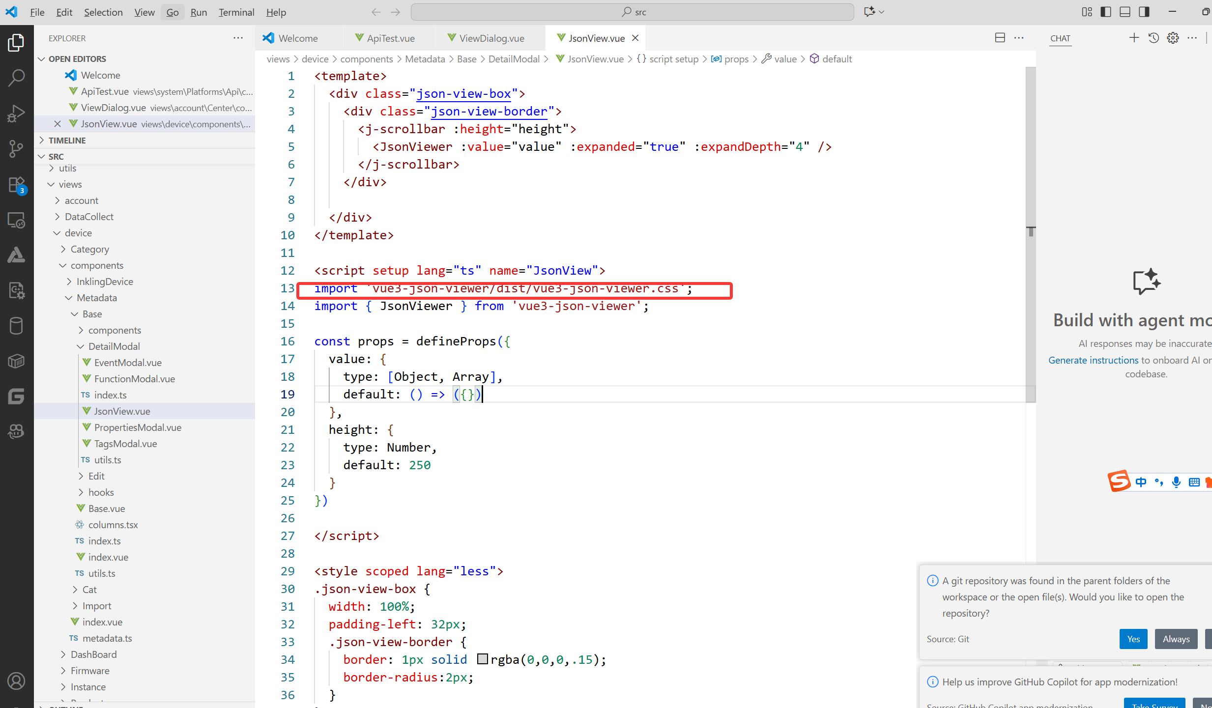 第一次启动的时候 可能有包不匹配, 或者个别文件要调整等问题,如代码中类似 vue3-json-viewer/dist/index.css 调整为 vue3-json-viewer/dist/vue3-json-viewer.css