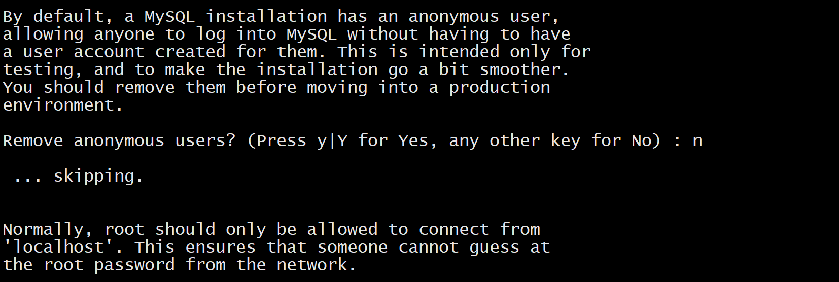 运行这个命令后,它会引导你完成一系列安全设置,你只需要根据提示输入 Y