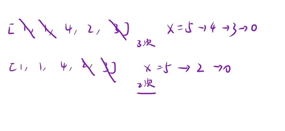 每次操作只能删除数组最左边or最右边的元素,从x中减去该元素的值,达到目的所需要的最小操作数