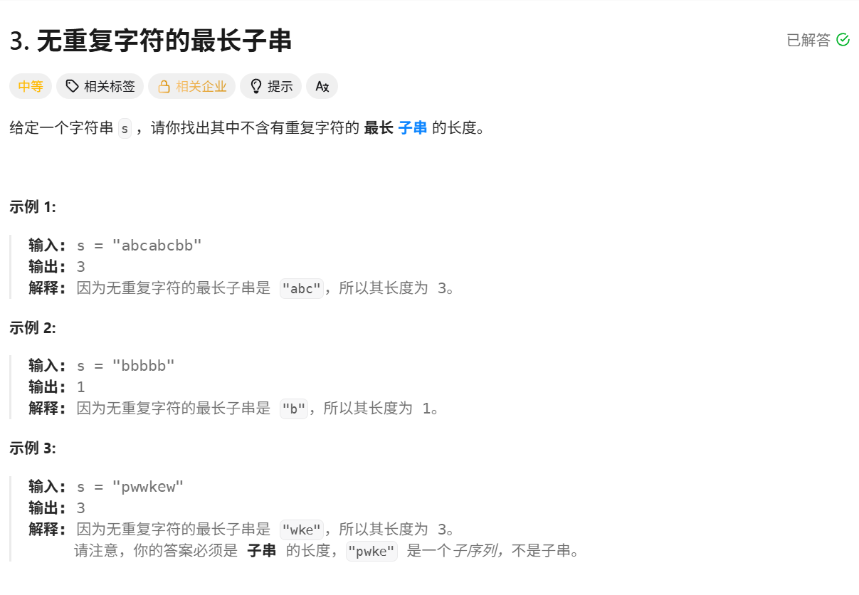 2.无重复字符的最长子串