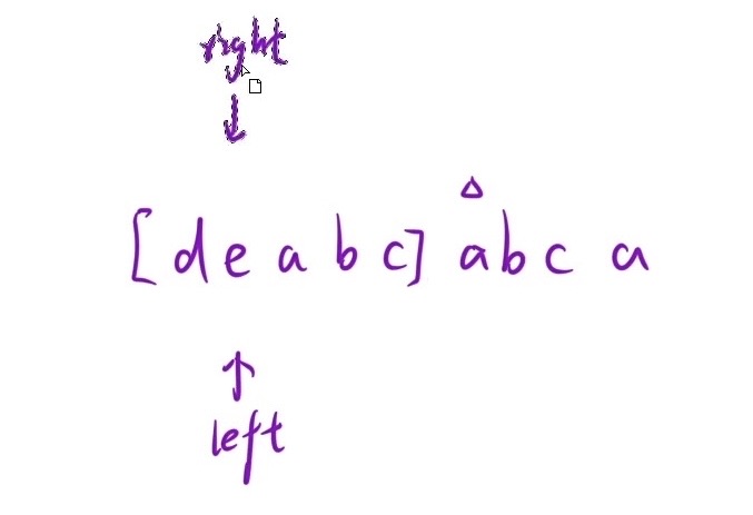 2.滑动窗口方法:right不要回去,因为子串是一个连续序列,right回到锚点(left位置)遍历一遍还是遍历到原来的位置,所以right没有回去的必要,只需让left移动从数组中出数据(如下图所示)