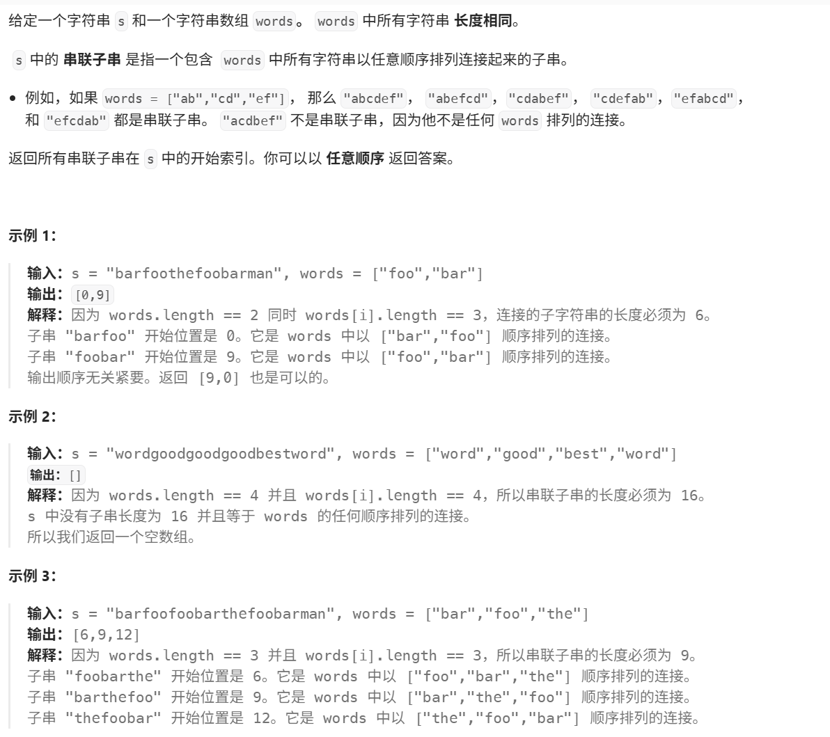 返回所有串联子串在 s