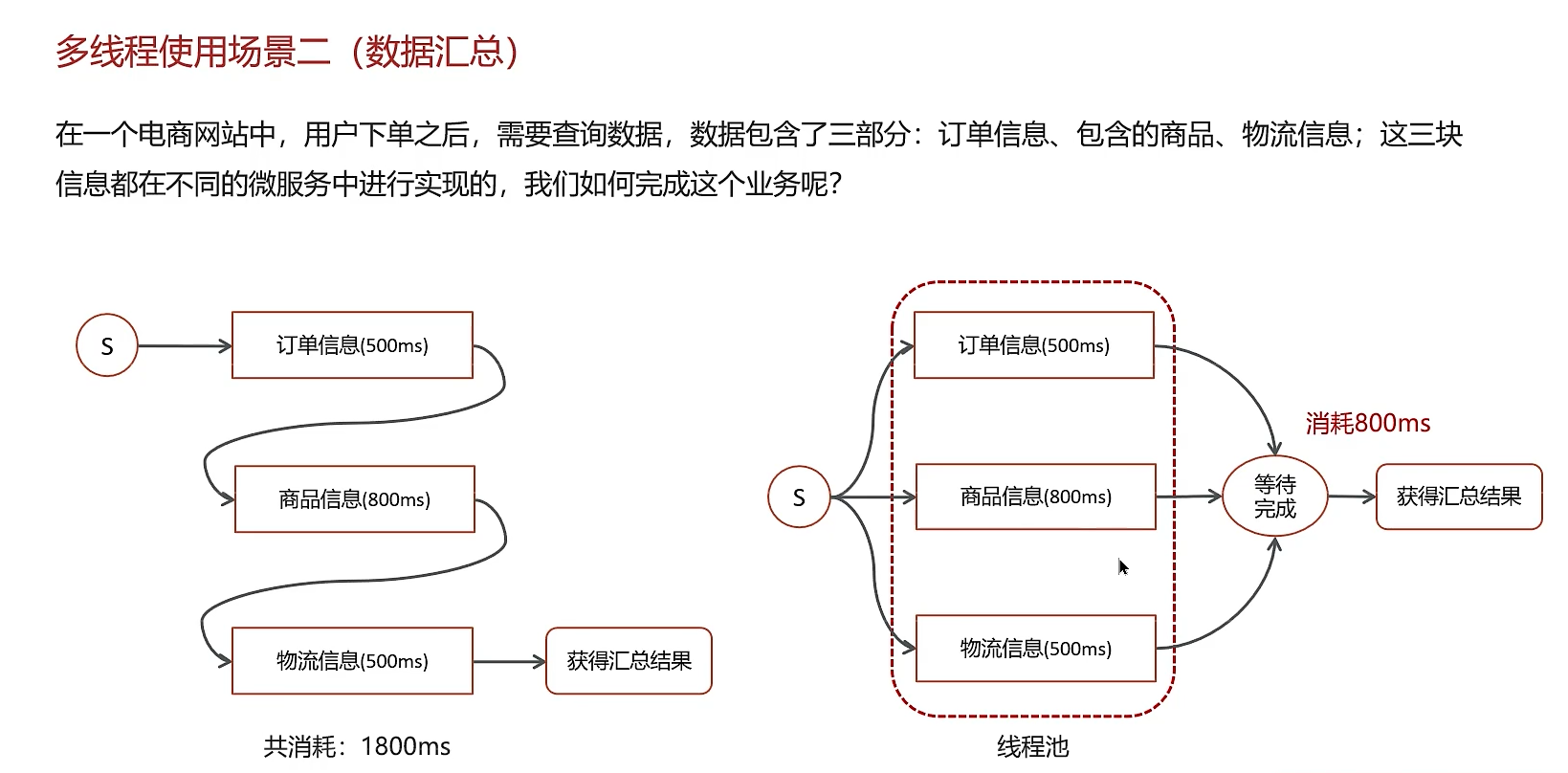 业务痛点:需要从多个不同的数据源(如多个微服务、多个数据库表)获取数据,然后聚合得到一个最终结果。如果串行调用,总耗时为所有调用耗时之和。