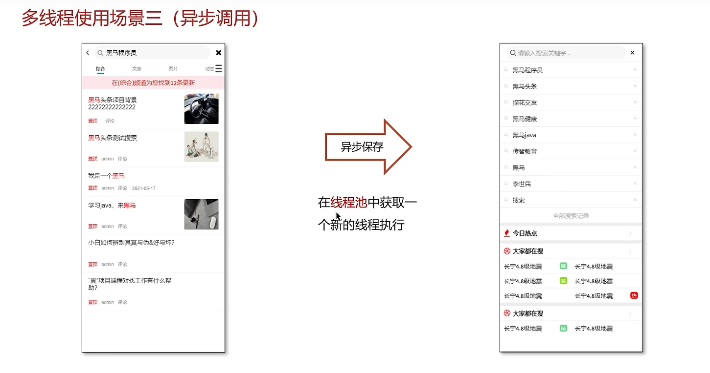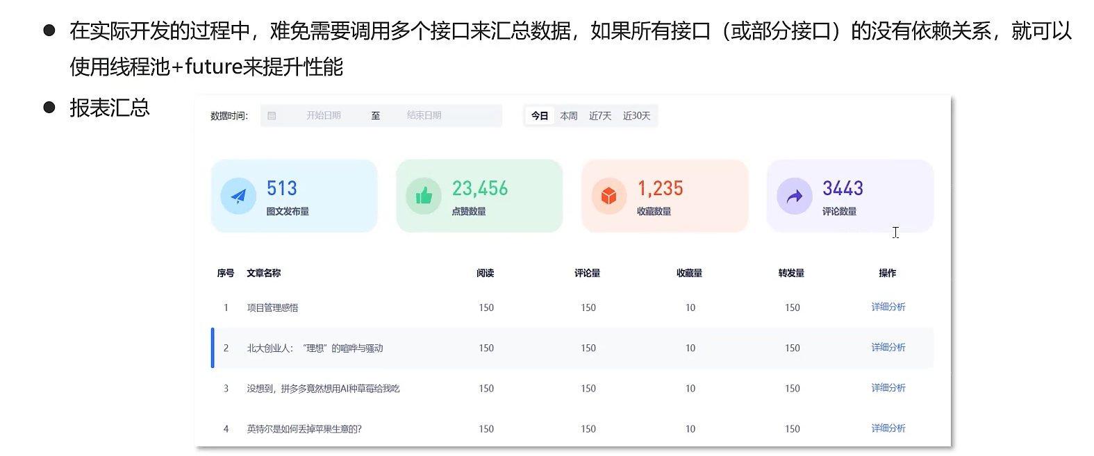 。这样即使发送短信的任务被阻塞,也不会影响记录日志的功能。 - 任务提交:在主流程(如Controller中)中,将需要异步执行的操作封装成任务,提交给对应的线程池后立即返回,无需等待其完成。
