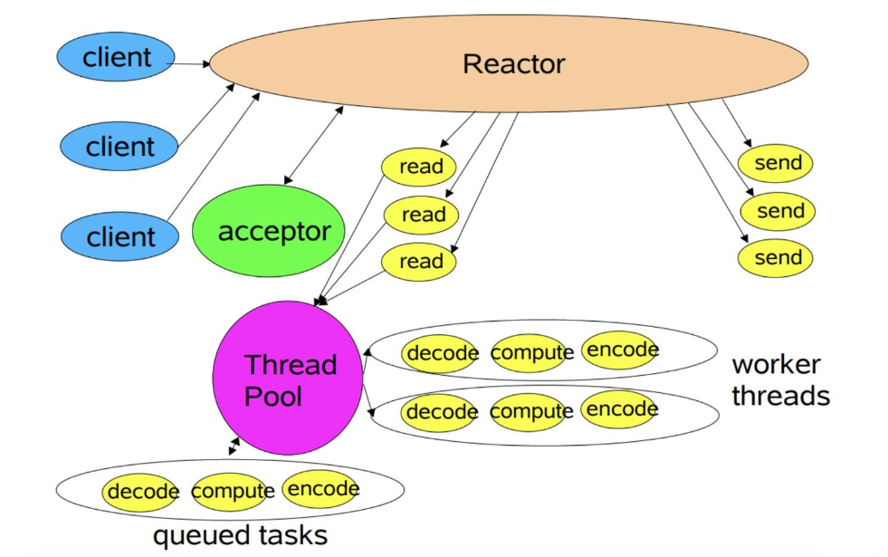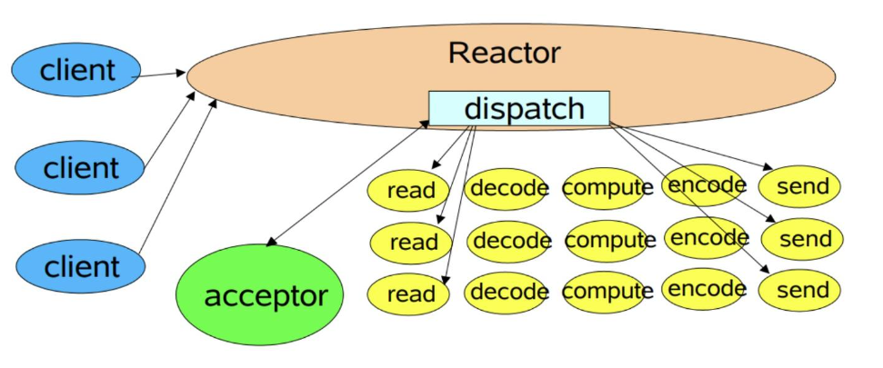 - 基于IO 多路复用技术(select/poll/epoll/kqueue),由一个 “反应器”(Reactor)监听所有客户端 socket 的 IO 事件(连接、读就绪、写就绪),事件触发时再分配资源处理,避免无效阻塞。