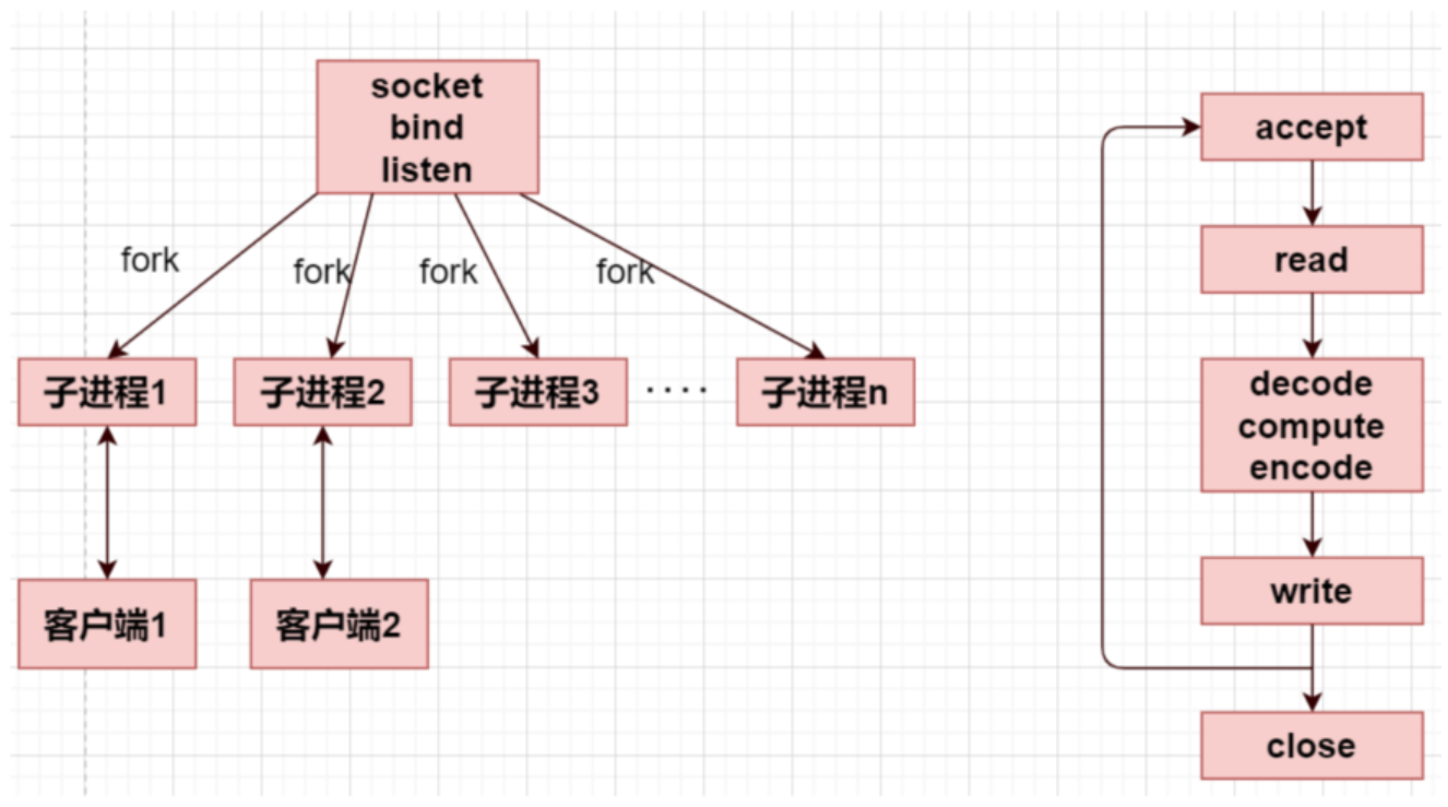 - 解决多进程 / 多线程模型中 “动态创建资源开销大” 的问题:启动时预先创建一批进程 / 线程(池),当新连接到来时,从池中分配一个空闲进程 / 线程处理请求,处理完后放回池中复用,避免频繁创建 / 销毁。