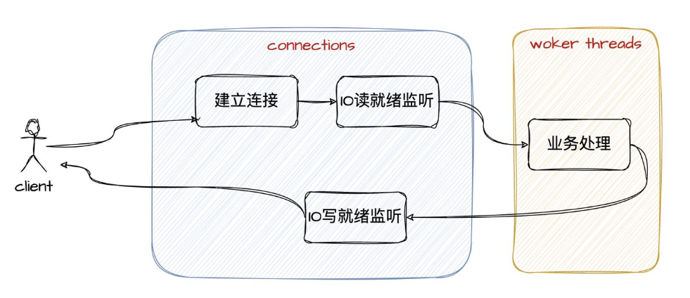 一般的请求中,耗时最长的一般是业务处理,所以用一个线程池(worker 线程池)来处理业务操作,在性能上的提升也是非常可观的。
