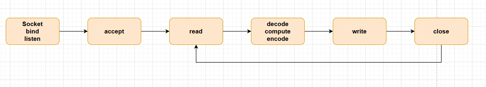 - 类似多进程模型,但用线程替代进程:主线程监听端口,接受连接后创建子线程,由子线程处理客户端请求,主线程继续等待新连接。