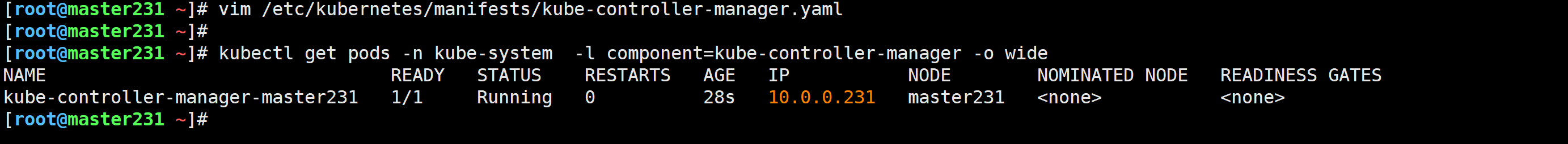 [root@master231 ~]# vim /etc/kubernetes/manifests/kube-controller-manager.yaml