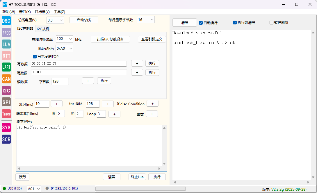 3、当前已经发布的2.31版本固件就支持,需要手动调用LUA函数i2c_bus("set_auto_delay", 1)即可,第2个参数1表示使能,0表示禁止