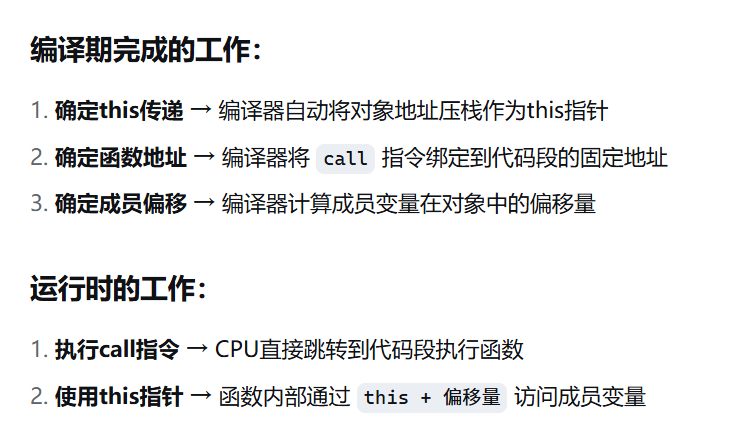 ————将调用this与编译链接起来,我们要理解的是,this和call都是在编译时候执行,编译过程将对象地址压栈,压栈的首地址就是this首地址,是通过对this进行偏移来找到成员变量的