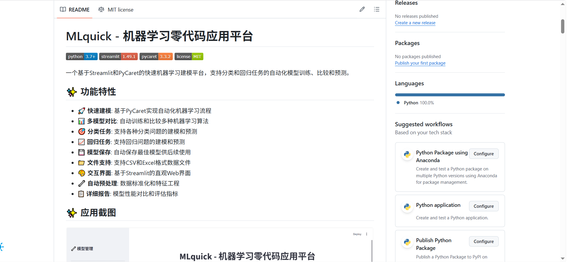 之所以能做到这么简单,背后其实是两大技术在撑腰。一个是Streamlit,它是个Python的Web框架,能把代码快速转换成网页界面,开发者不用费劲去设计前端,专注做功能就行;另一个是PyCaret,这是个机器学习工具包,把数据预处理、模型训练、结果评估这些步骤都自动化了,相当于给机器学习流程装了个“自动驾驶”模式。MLquick把这两个工具结合起来,再针对业务场景做了优化,就成了现在这个零代码的平台。
