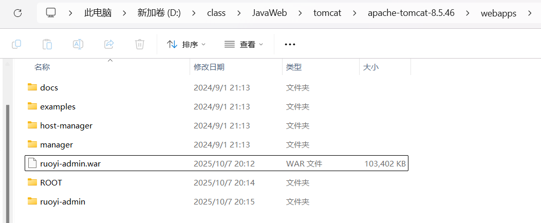 1、将刚刚打包好的.war文件,上传到tomcat里的/webapps内