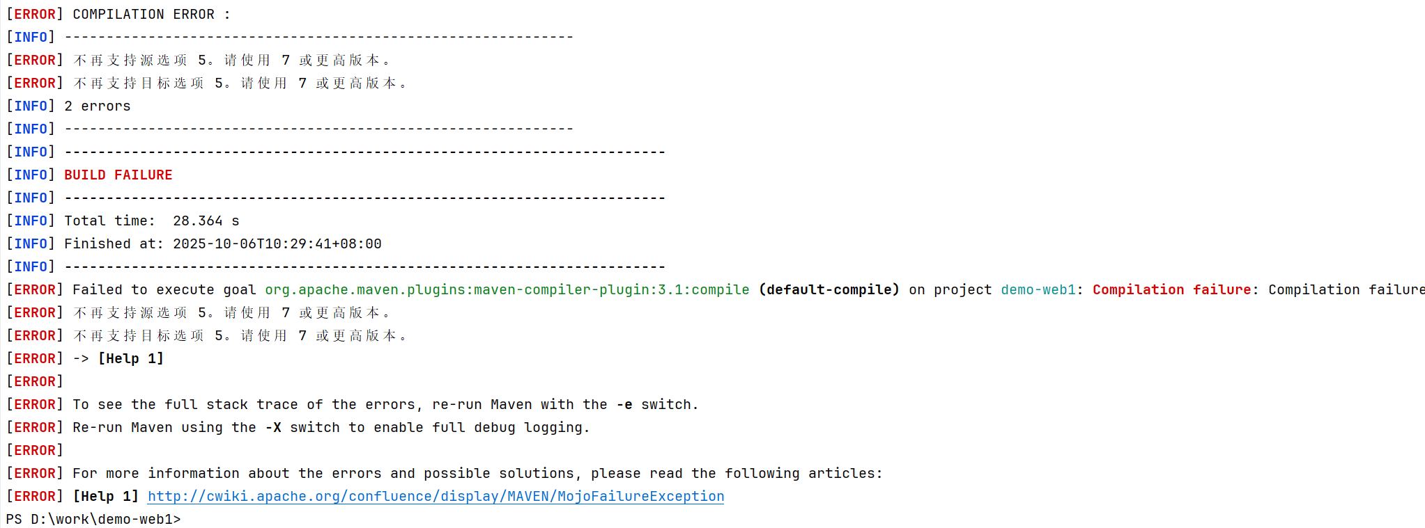 这是因为 Maven 默认使用的 maven-compiler-plugin 插件版本较老,默认的 Java 语言级别是 1.5,而 JDK 17 已不再支持这么低的版本。
