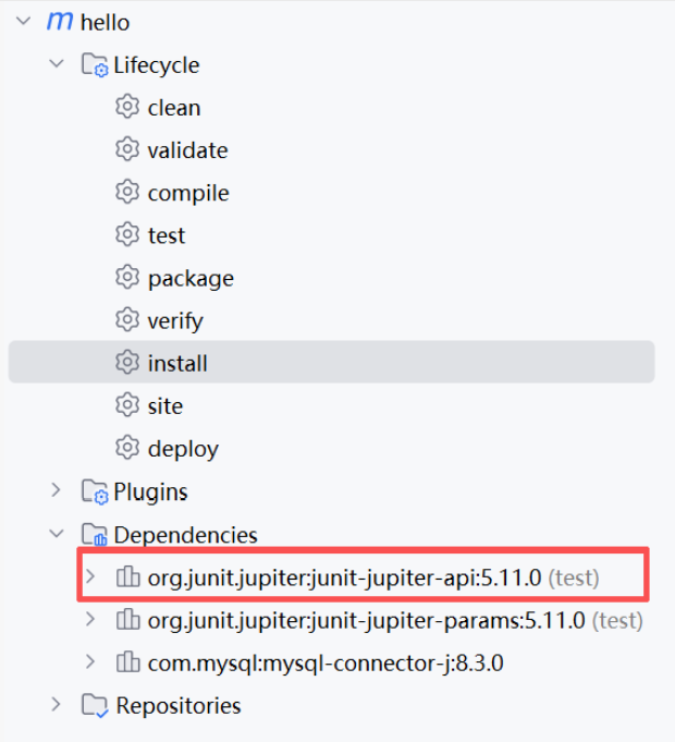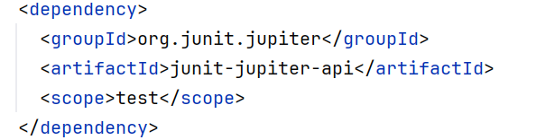 <dependency><groupId>org.junit.jupiter</groupId><artifactId>junit-jupiter-api</artifactId><version>5.9.2</version><scope>test</scope></dependency>