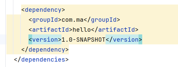 <dependencies><dependency><groupId>com.example</groupId><artifactId>module-b</artifactId><version>1.0.0</version></dependency>