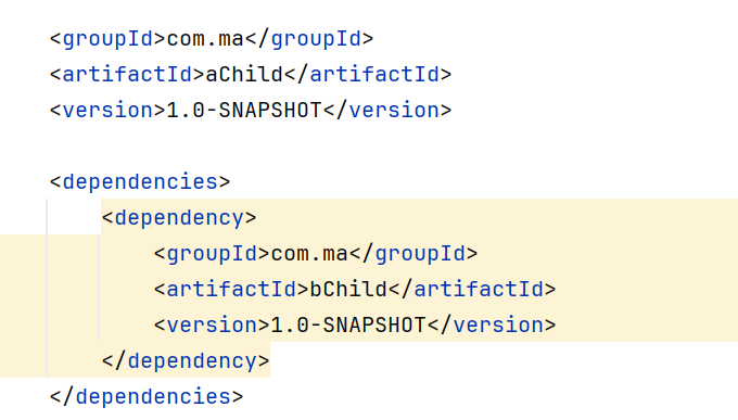 我在aChild 的 pom.xml 里面添加 bChild 的坐标信息