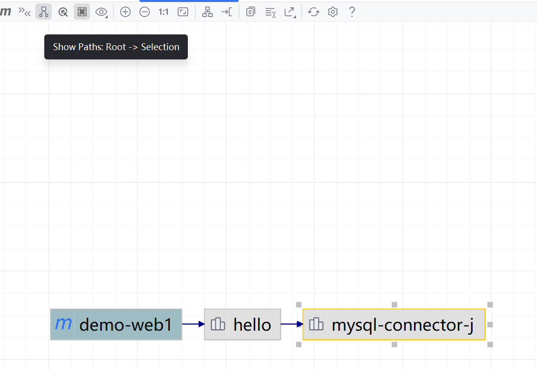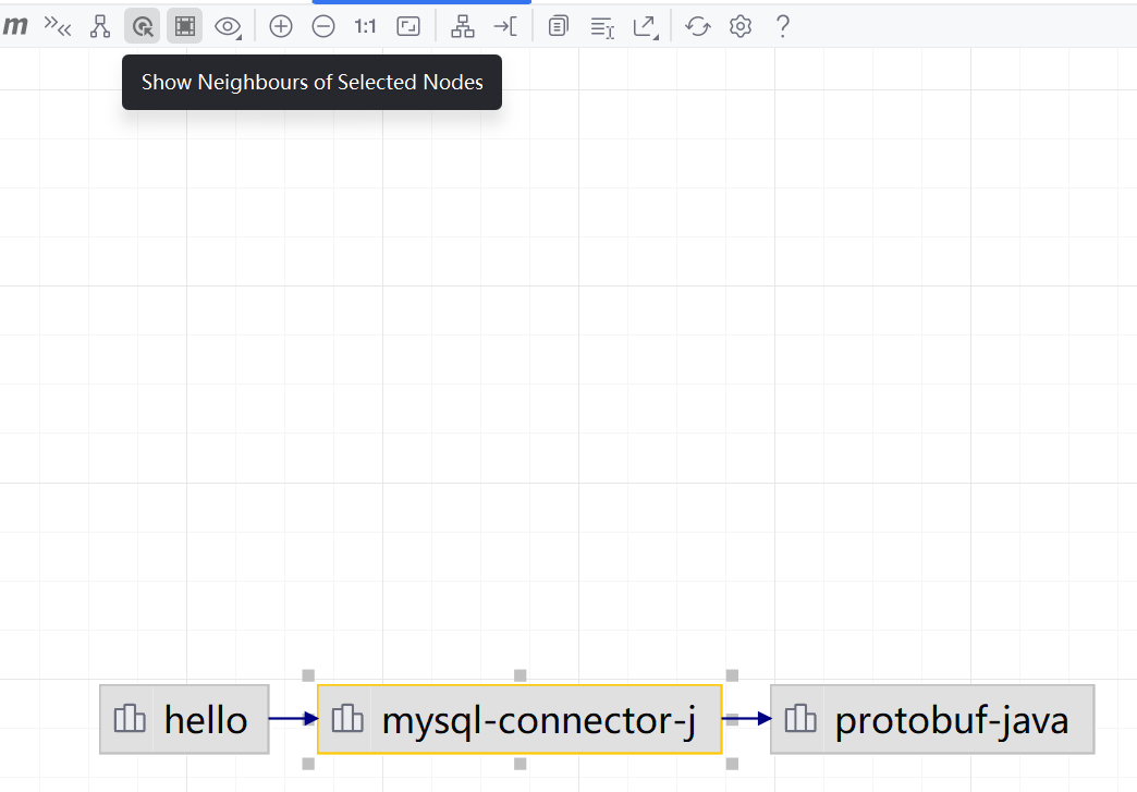 想单独查看某个依赖链,可以在图中点击该依赖,选择Show Paths 或 Show Neighbours of Selected Nodes