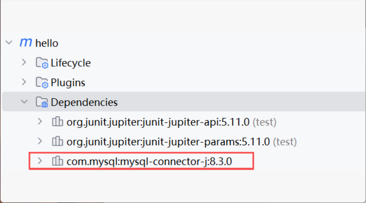 <dependency><groupId>com.mysql</groupId><artifactId>mysql-connector-j</artifactId><version>8.3.0</version></dependency>