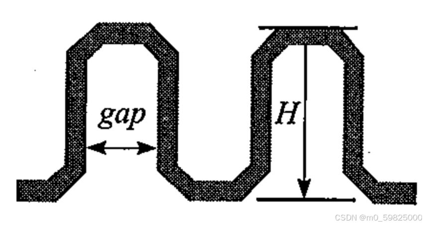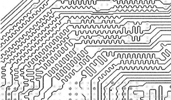 并行总线的PCB布线过程中,为了满足时序要求,信号线之间通常会有等长要求。般通过绕线的方式调整走线长度,这就是通常所说的蛇形走线,如图所示。蛇形走线的最终目的是为了调整信号的延时,让有时序约束的一组信号同时到达接收端。