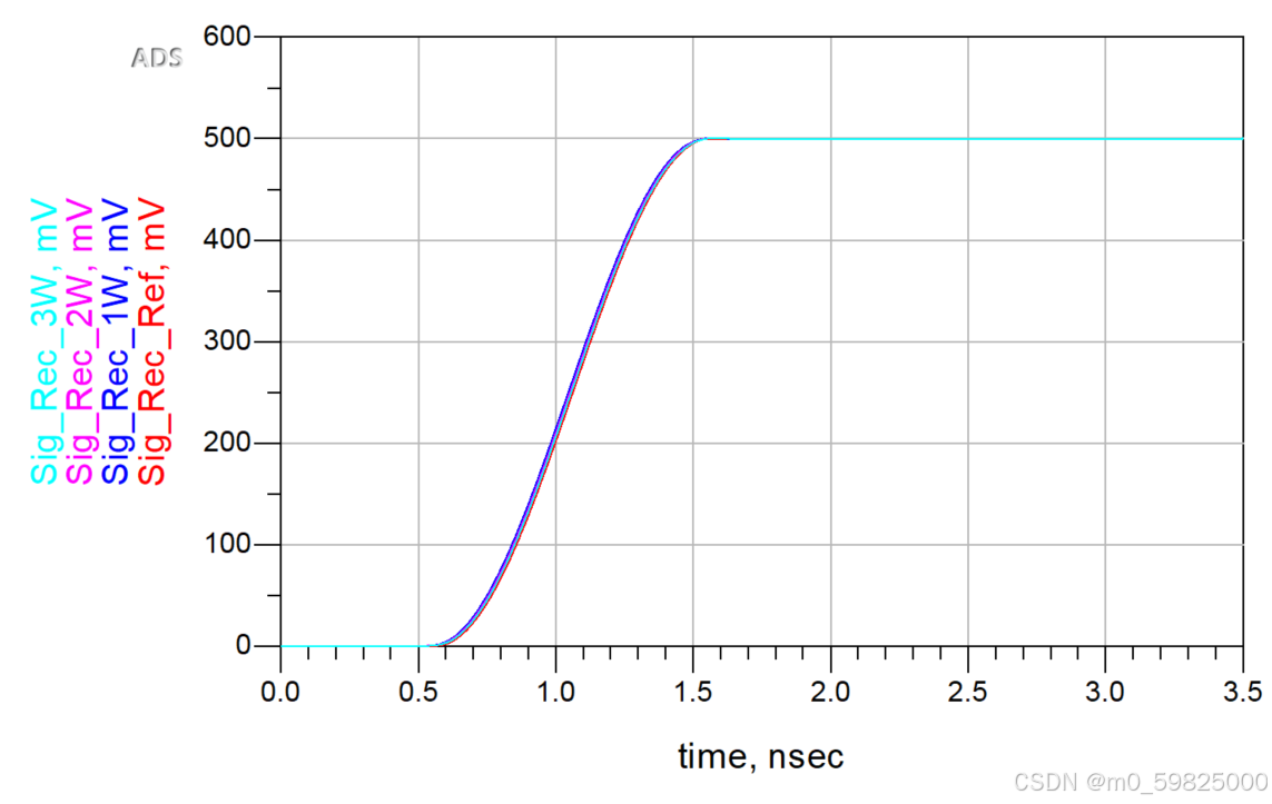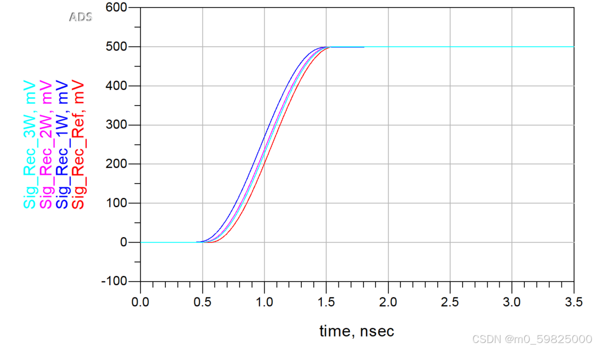 可以看到绕线参数H越短,信号到达时间越接近于不饶线的传输线。