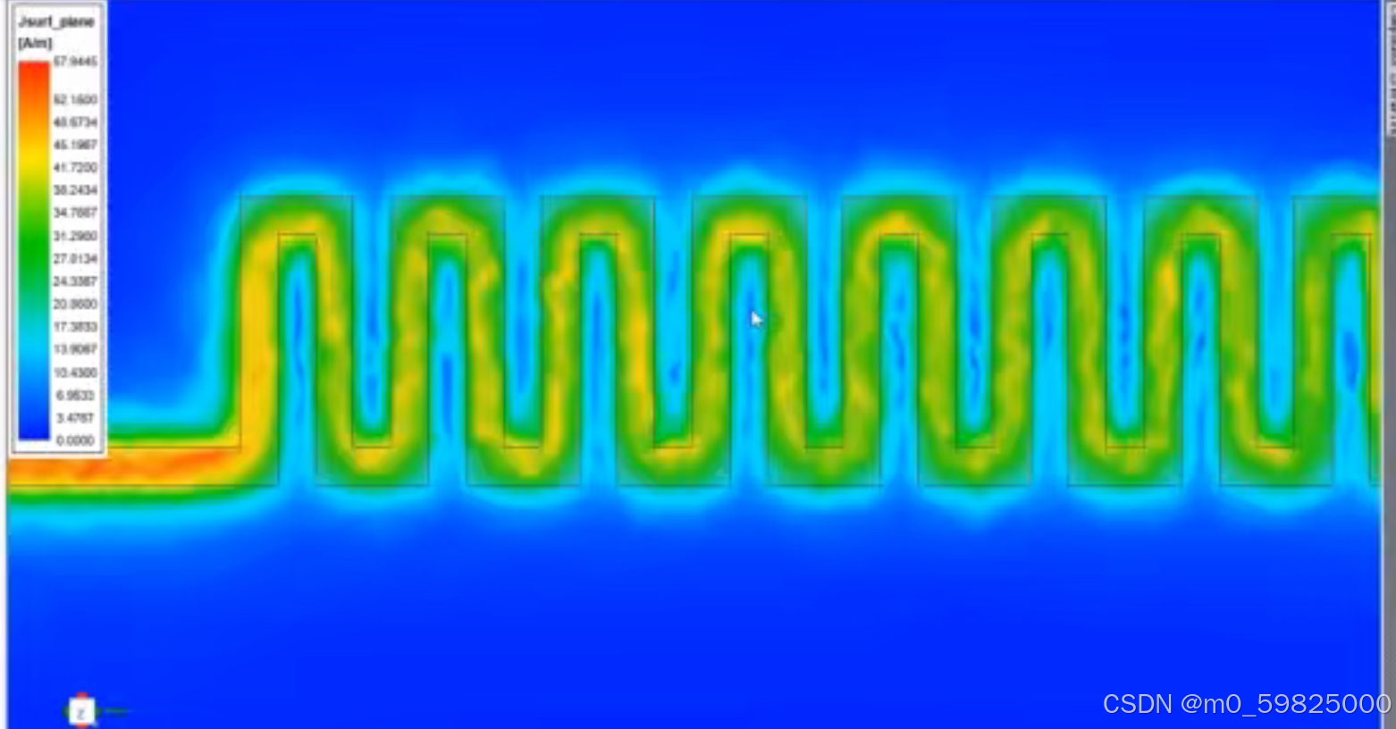 使用HFSS仿真蛇形走线中电流分布情况:
