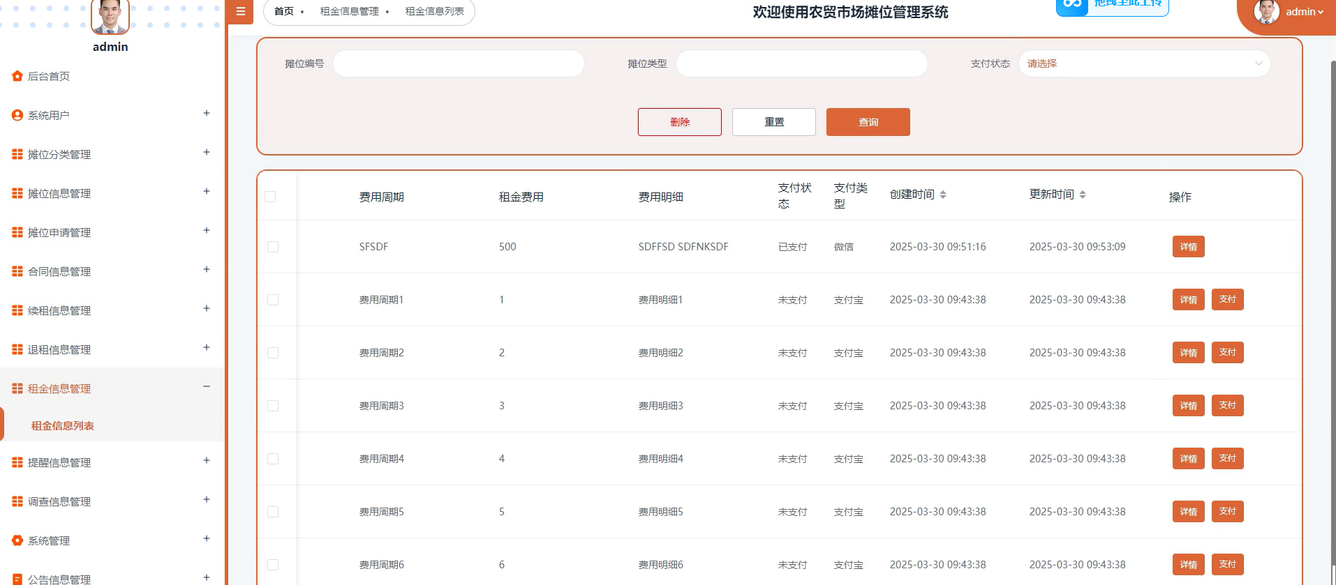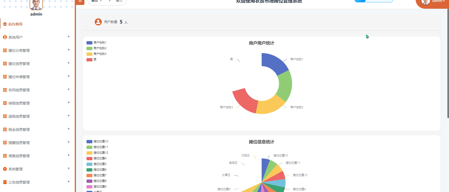 数据看板:实时展示摊位利用率、租金收缴率等关键指标。