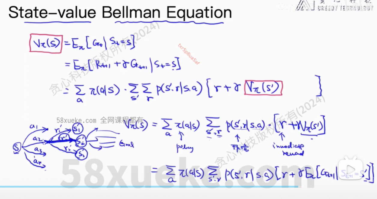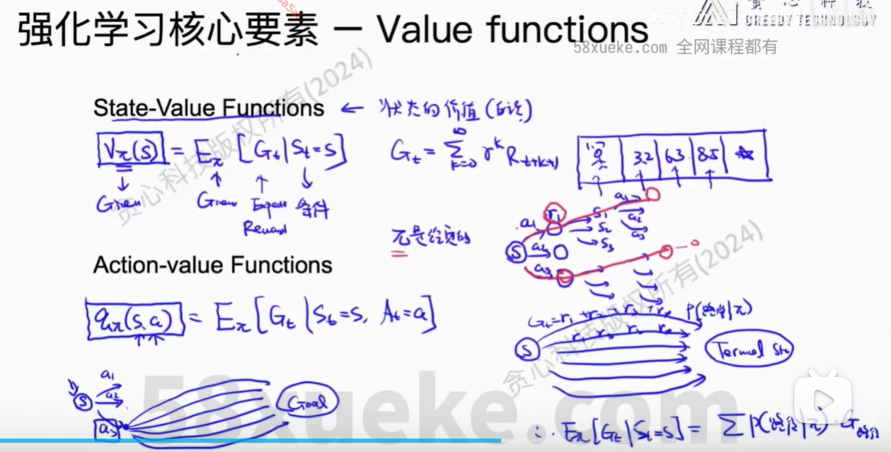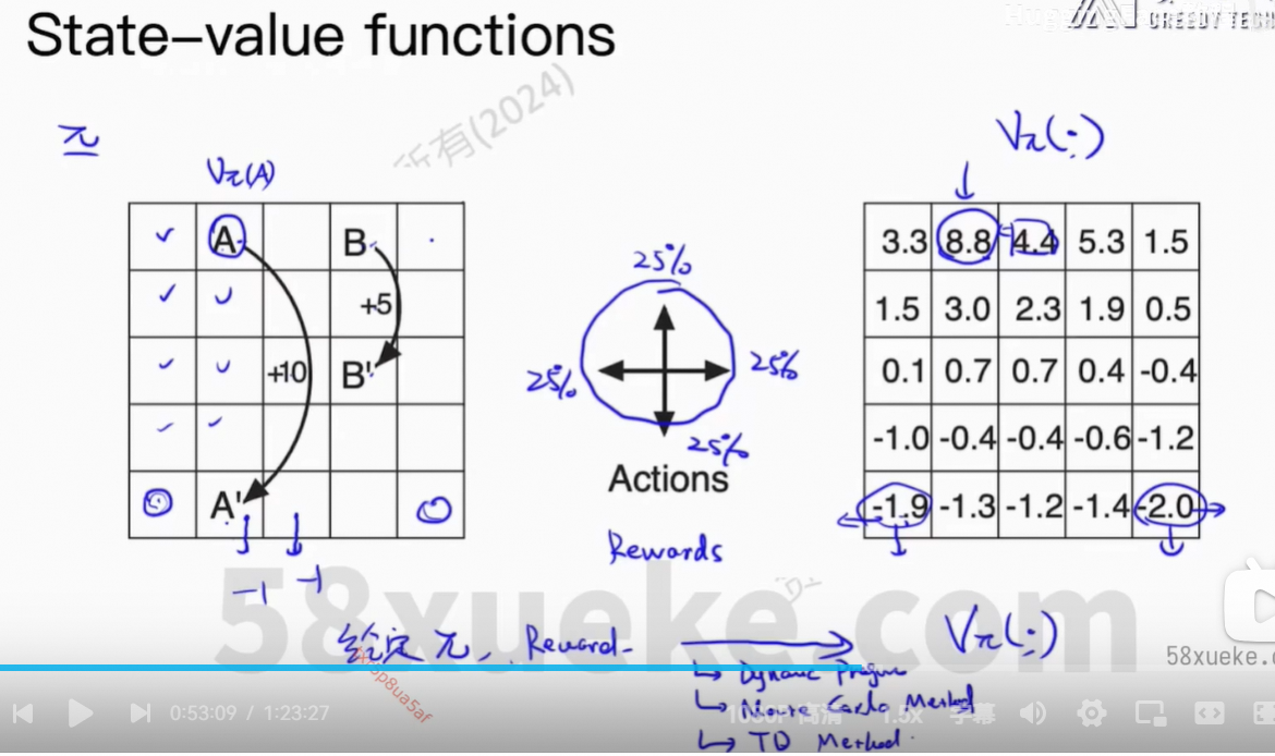 State-Value Functions:在策略给定的情况下,评估一个状态的价值。