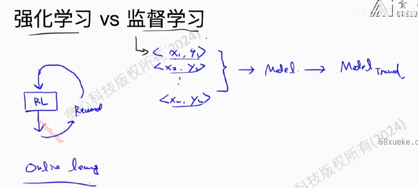 1)监督学习,<input, output>提前准备好的,强化学习没有