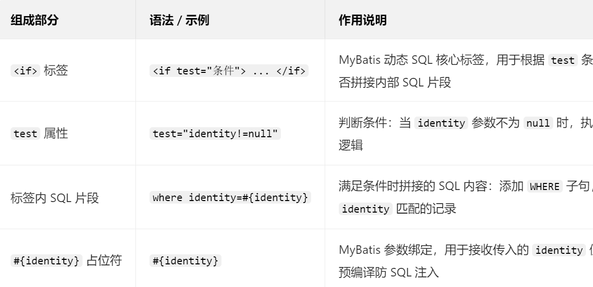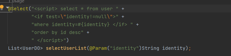 - 作用:MyBatis 注解中,当 SQL 包含动态标签(如