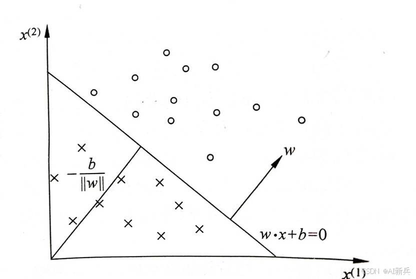 在感知机模型中,权重向量 w 和偏置 b 具有明确的几何意义。权重向量 w 是分类超平面的法向量,它决定了超平面的方向。偏置 b 则决定了超平面距离原点的远近。